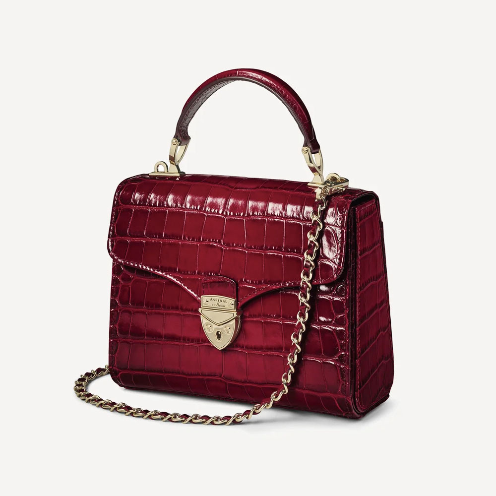 ASPINAL OF LONDON 梅費爾包-鱷魚紋櫻桃紅