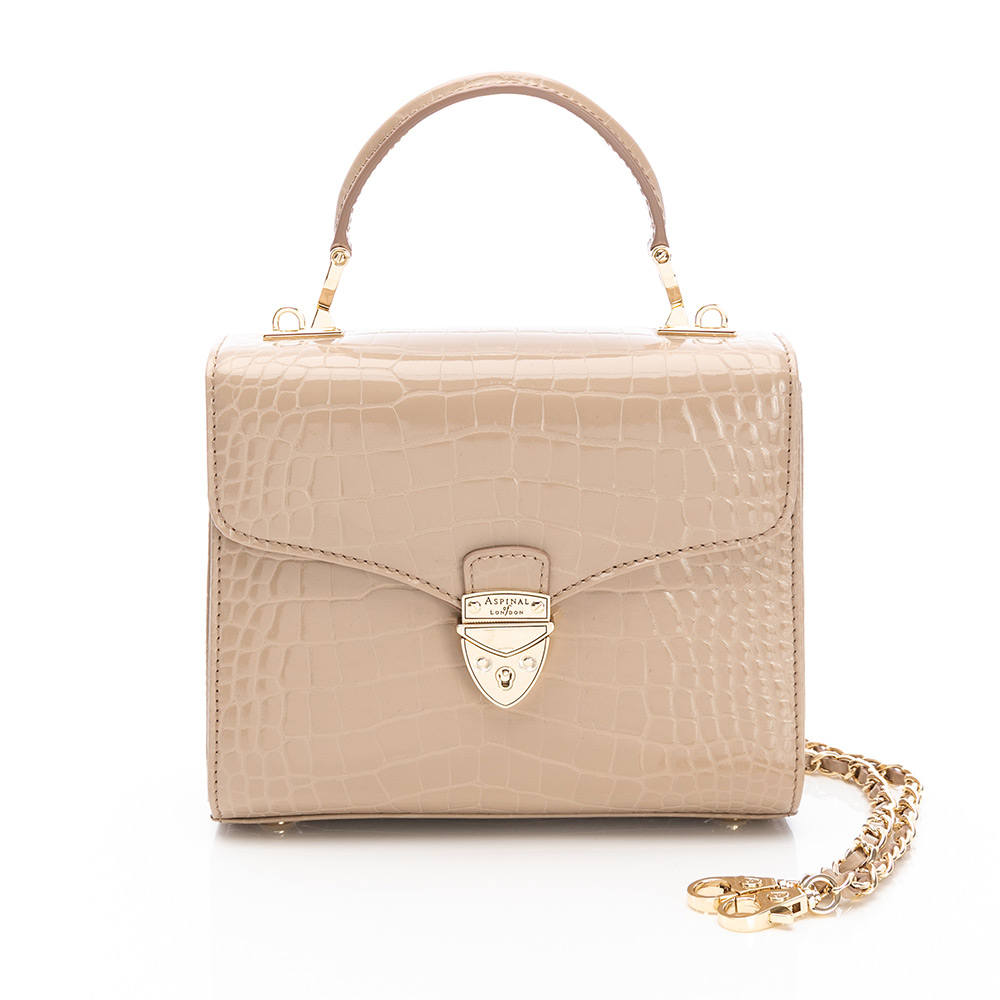 ASPINAL OF LONDON MIDI Mayfair Bag (奶茶灰)(鱷魚壓紋/雙色鍊帶)