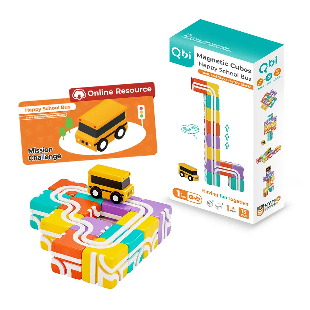 探索系列_快樂上學去:方塊堆疊組|Qbi益智軌道磁吸玩具