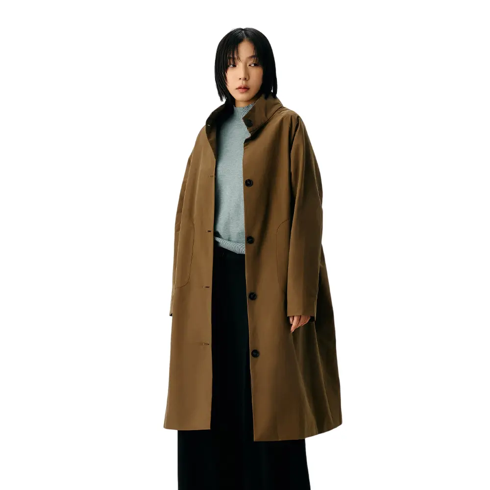 Sew Incorporation 優雅立領卡其色長風衣外套