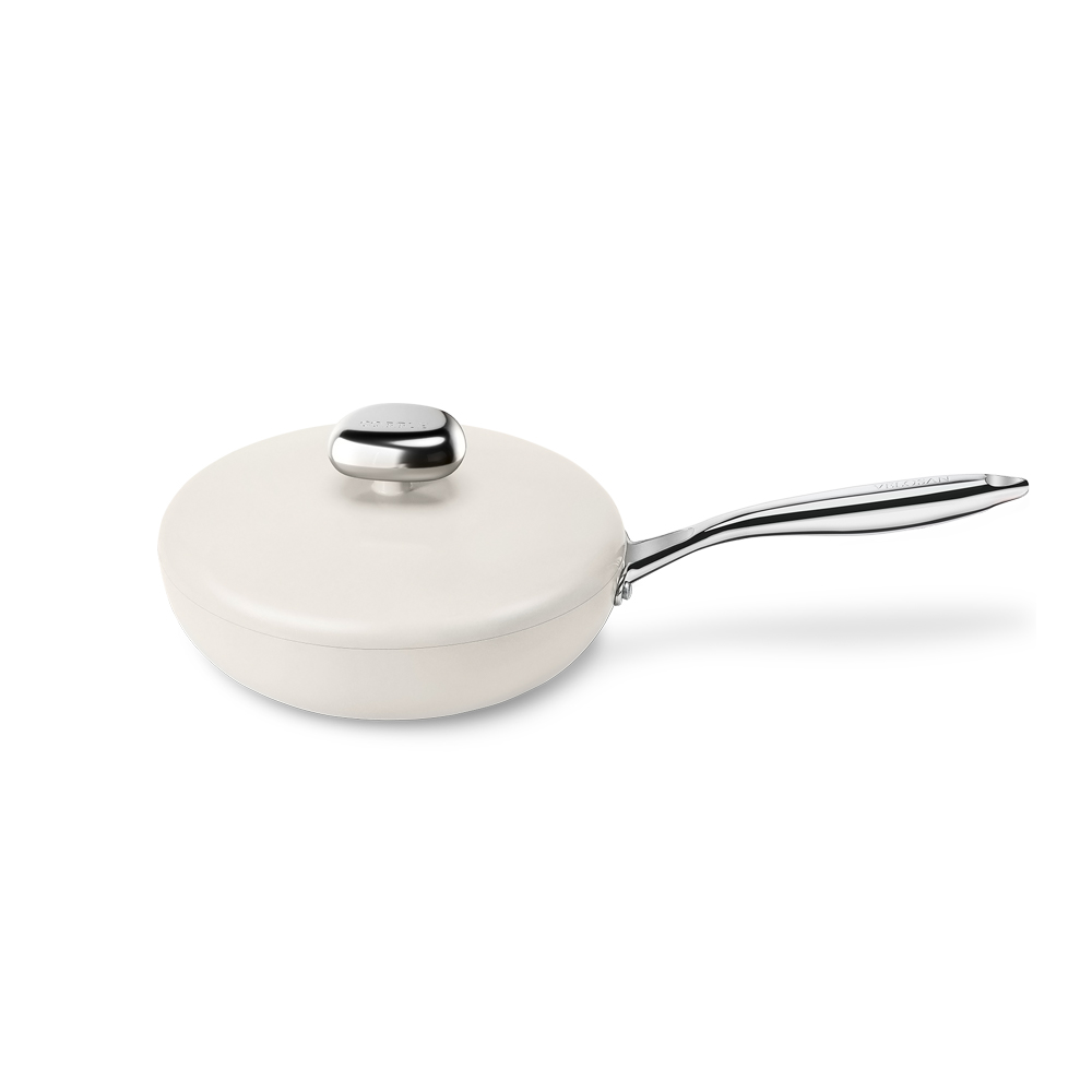 德國Velosan 溫侖山 鵝卵石鑄鋁煎鍋26cm 附蓋-白色