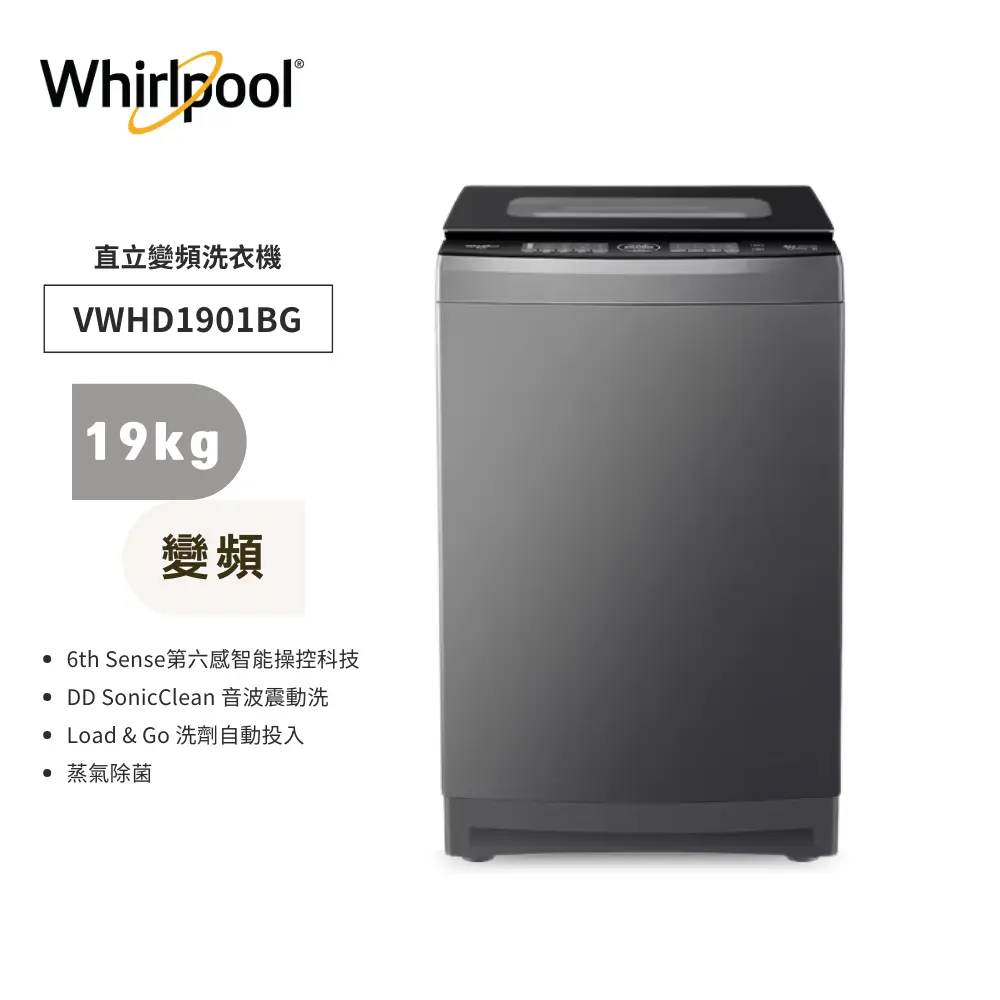 【Whirlpool 惠而浦】SonicClean 19公斤直驅變頻直立洗衣機VWHD1901BG