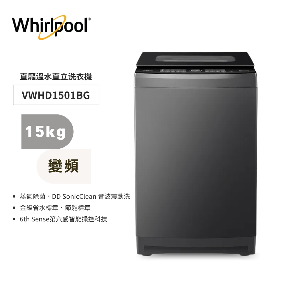 【Whirlpool 惠而浦】 SonicClean 15公斤 DD直驅變頻直立洗衣機 VWHD1501BG