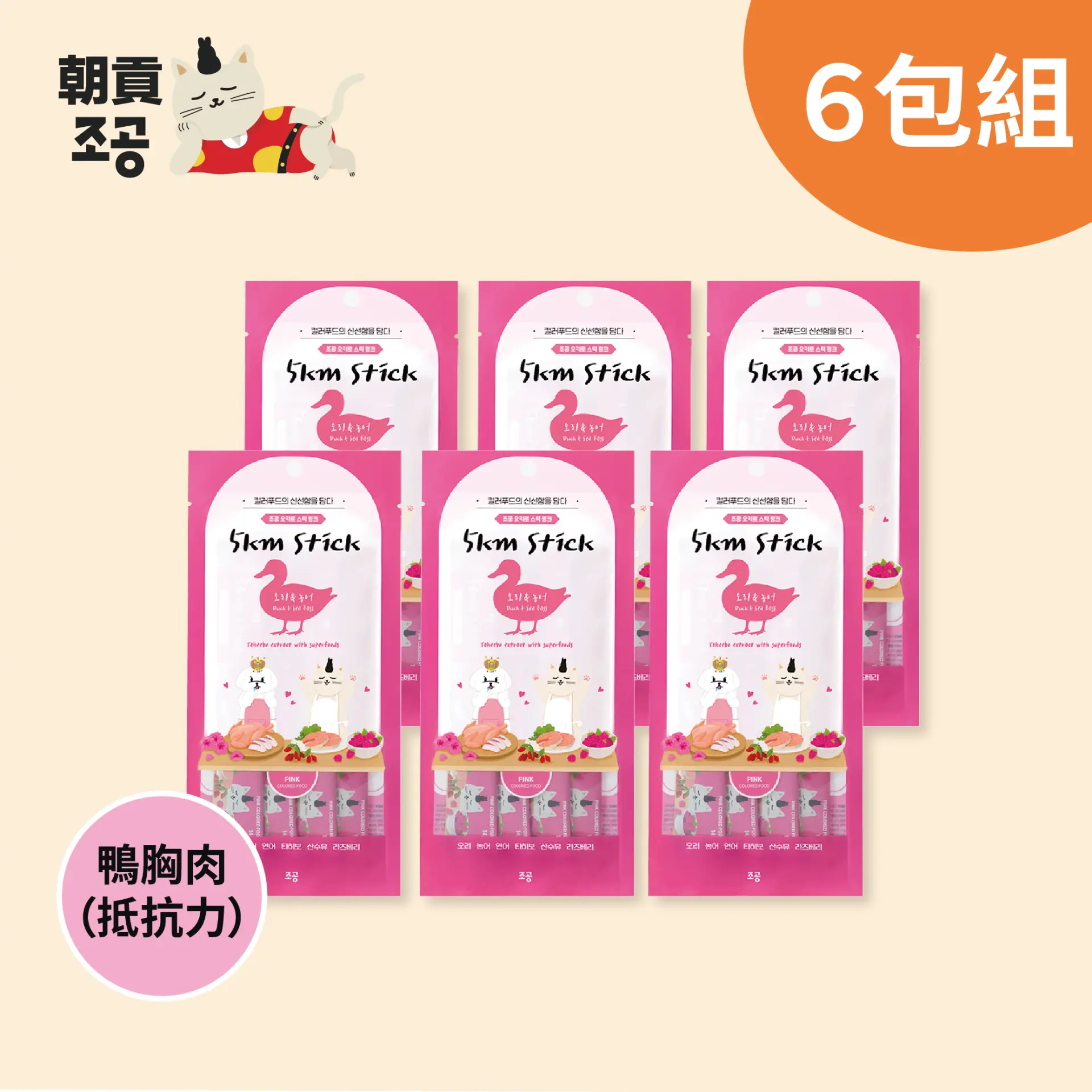 【韓國朝貢】5km stick 犬貓營養蔬果肉泥 - 粉色鴨胸肉 抵抗力(14gx4入x6包)