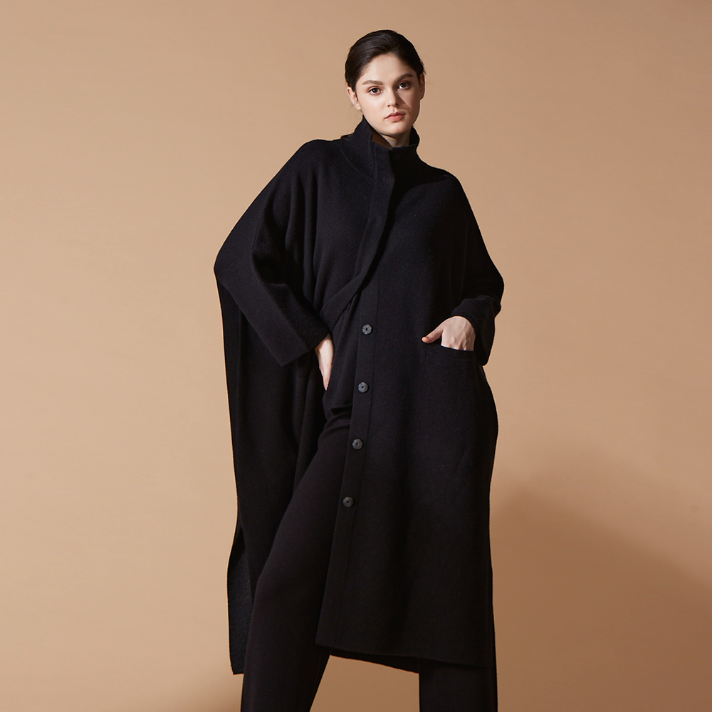 喀什米爾立領寬版羊絨大衣外套(2色)