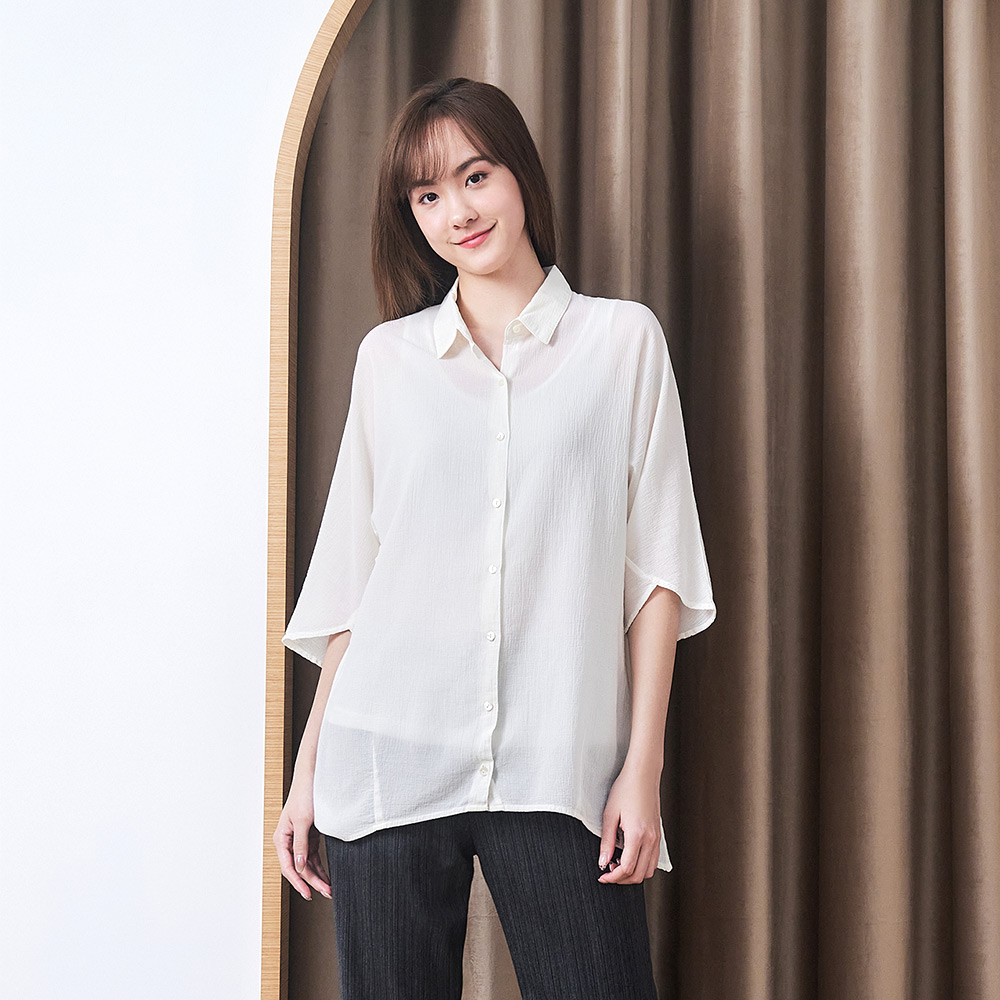 純棉平織蝴蝶袖長版襯衫