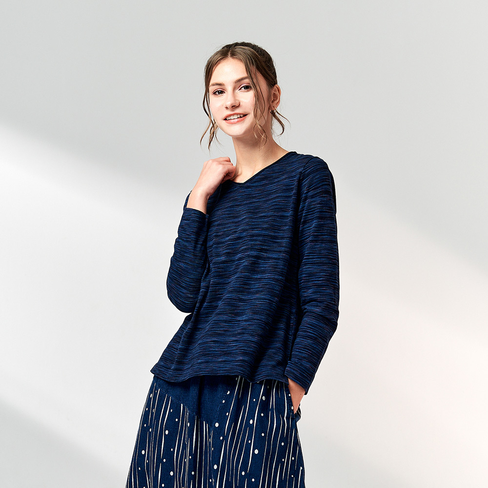 INDIGO暈染細捲V領上衣(3色)