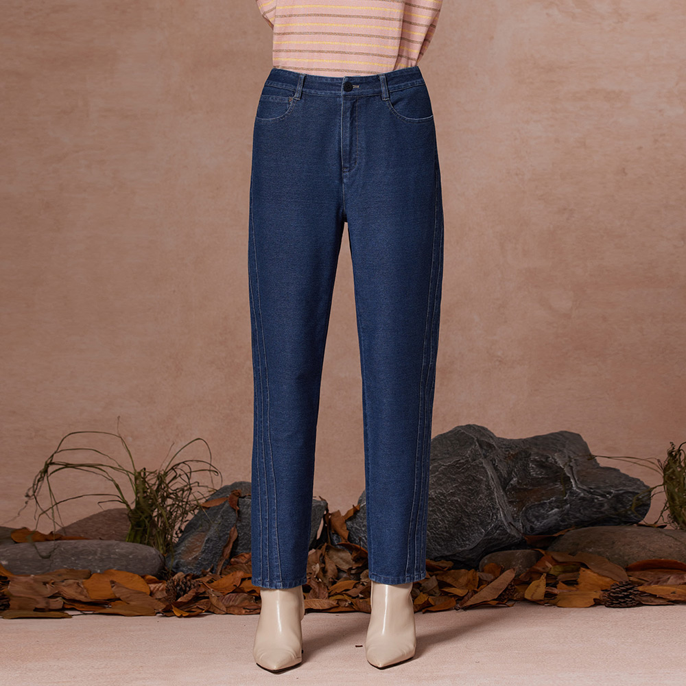 側剪接修身直筒牛仔褲