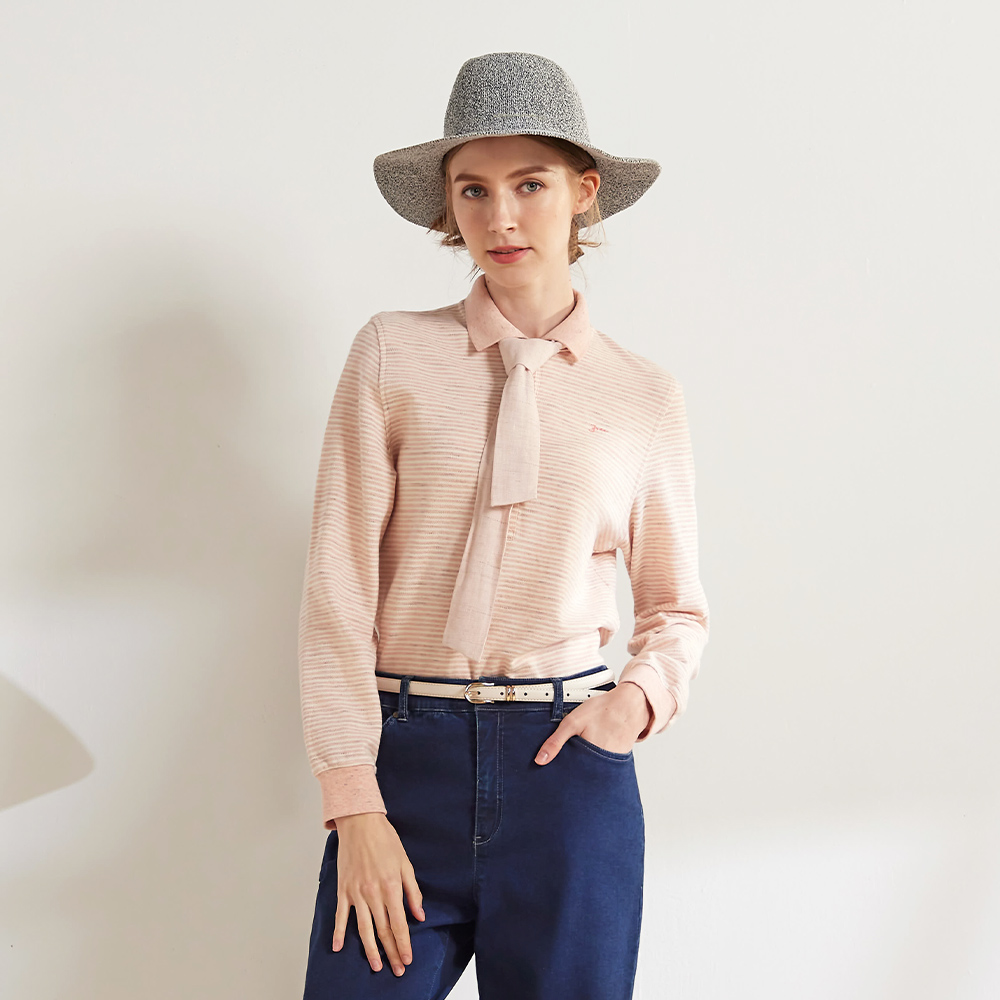 e.有機草木染網眼細條紋POLO衫(2色)