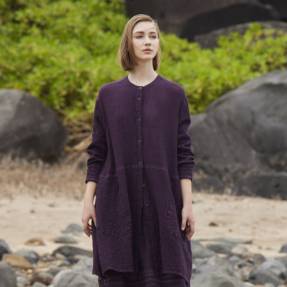 free.藍染草木染皺感開襟長版上衣(2色)