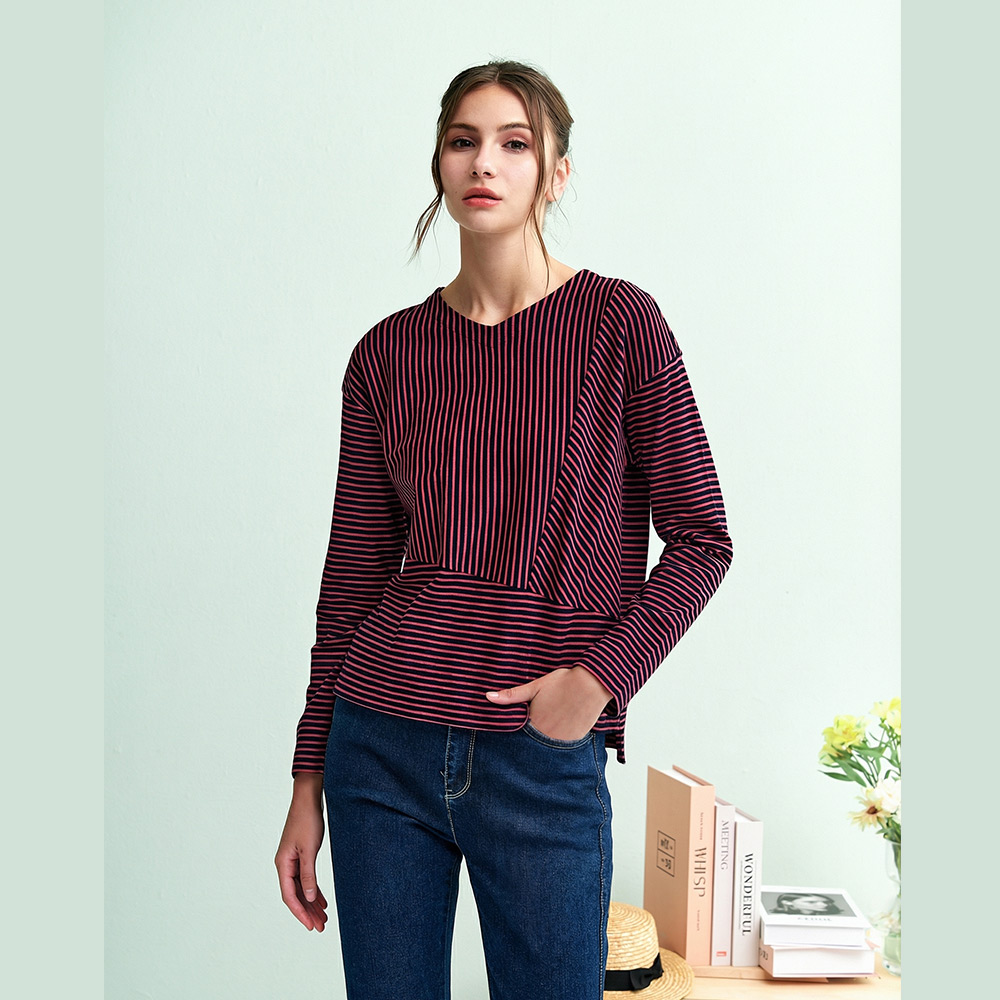 INDIGO暈染條紋V領長袖上衣(3色)
