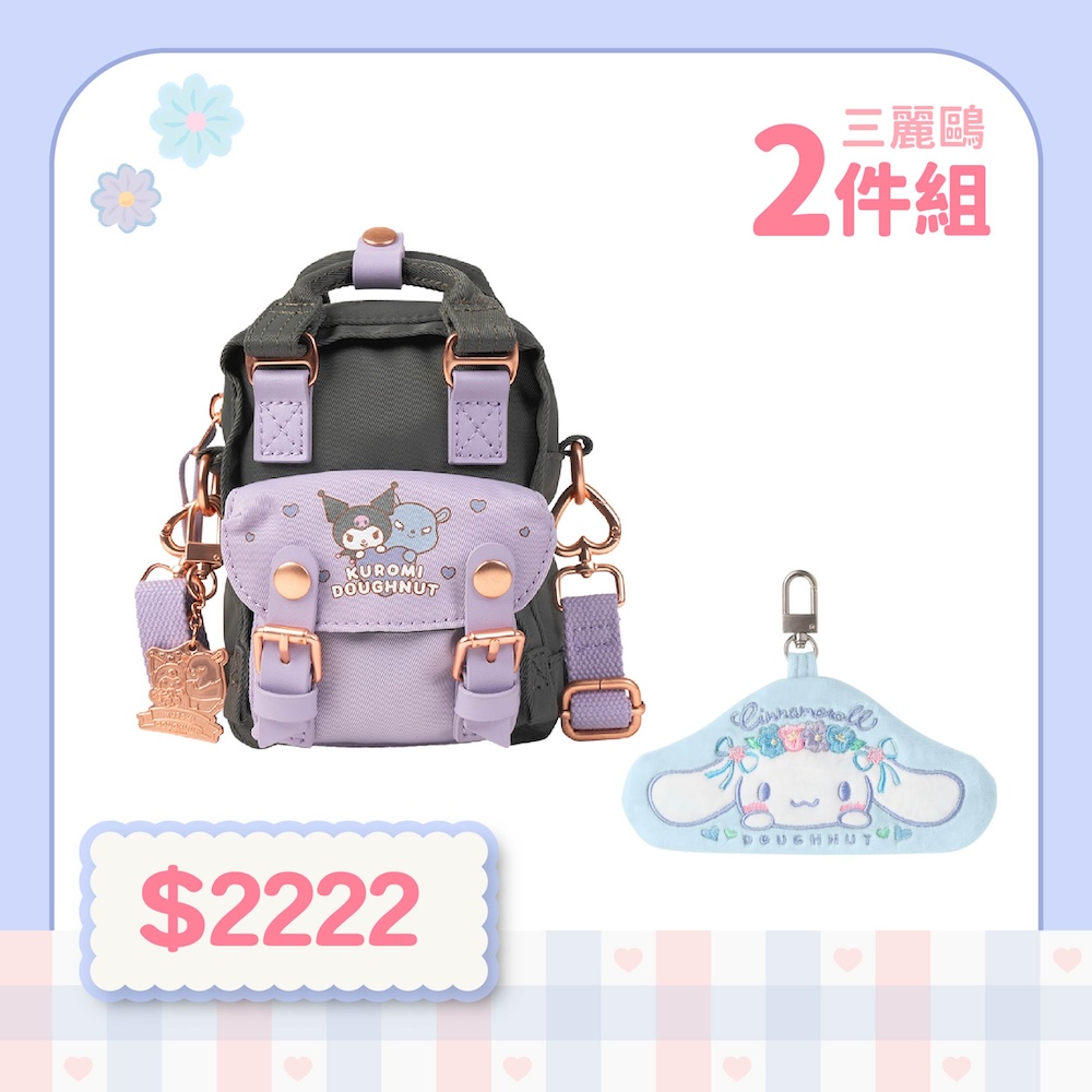 【三麗鷗 兩件組】斜背小包 (深灰) + 吊飾 (冰藍)
