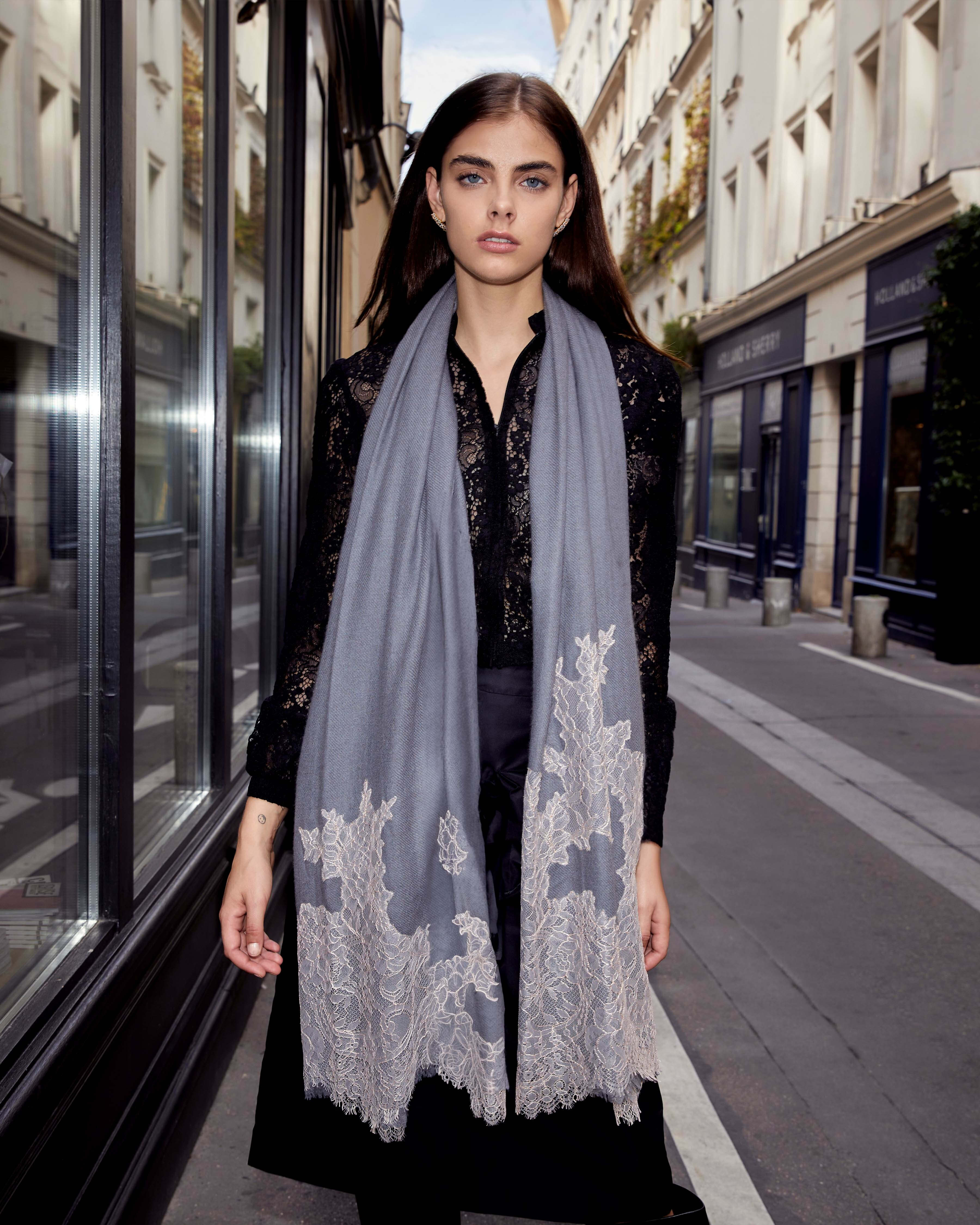 Calliope深夜微光蕾絲純羊絨Cashmere圍巾