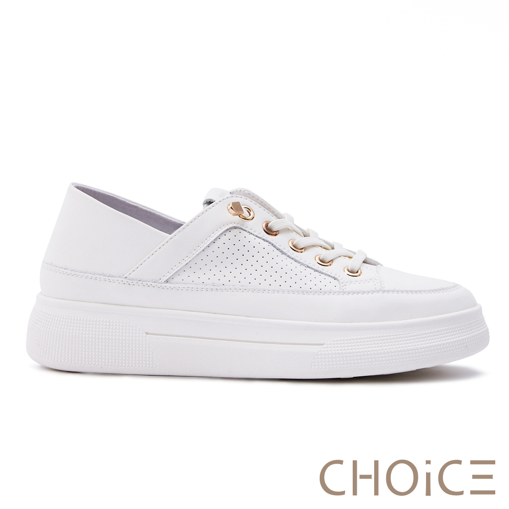 CHOiCE 真皮免綁帶厚底休閒鞋 白色 #37858