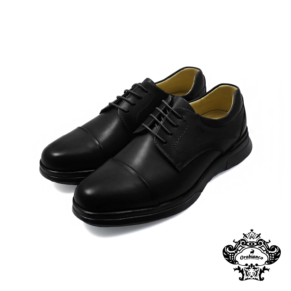 【Orobianco】經典質感橫飾舒適底綁帶休閒皮鞋 黑色(OR513123-BL)
