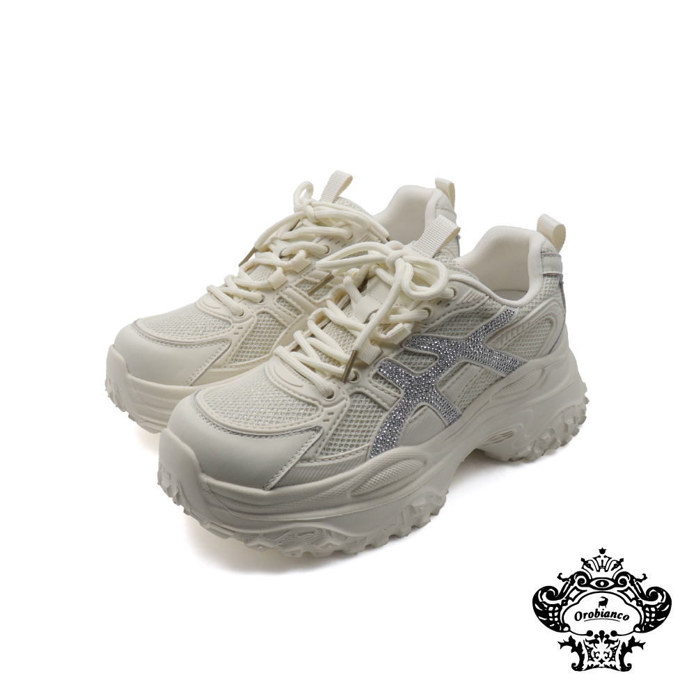 【Orobianco】經典厚底增高潮流亮片造型老爹鞋 白色(OR536001W-IV)