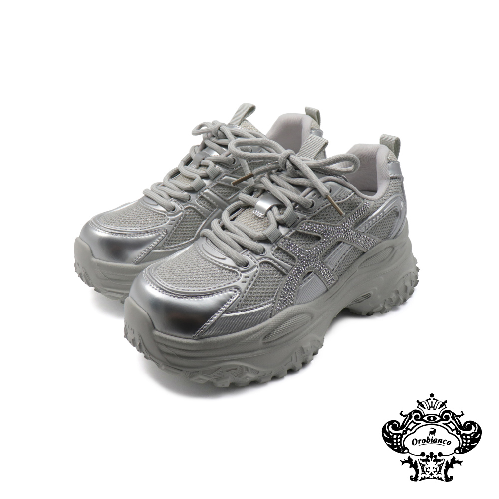 【Orobianco】經典厚底增高潮流亮片造型老爹鞋 銀色(OR536001W-SIL)