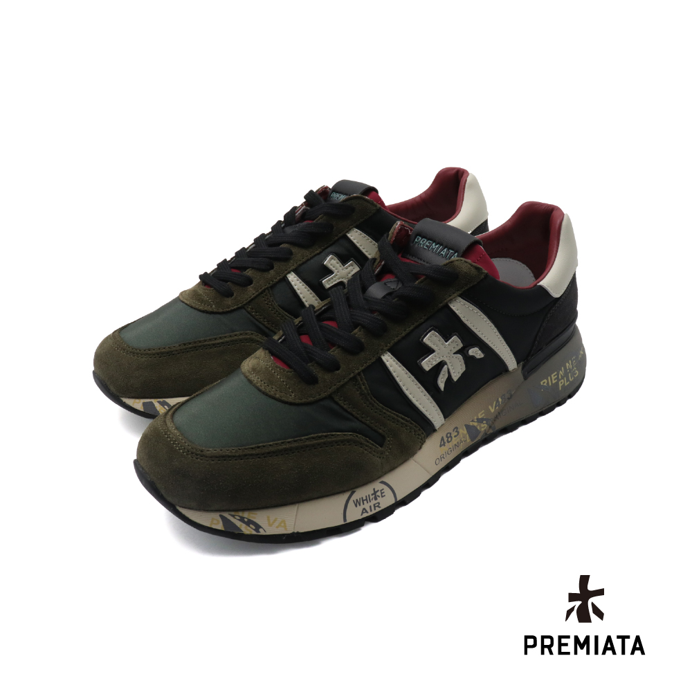 【Premiata】LANDER系列 | 義大利麂皮拼接漸層造型休閒鞋 軍綠色(VR6905-DGR)