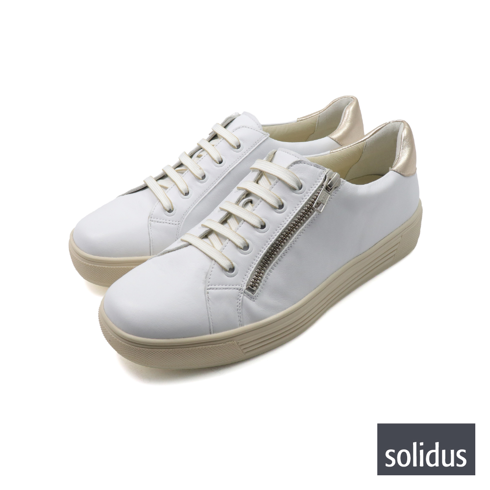 【Solidus】德國機能健康麂皮拉鍊造型氣墊休閒鞋 白色(30136-WH)