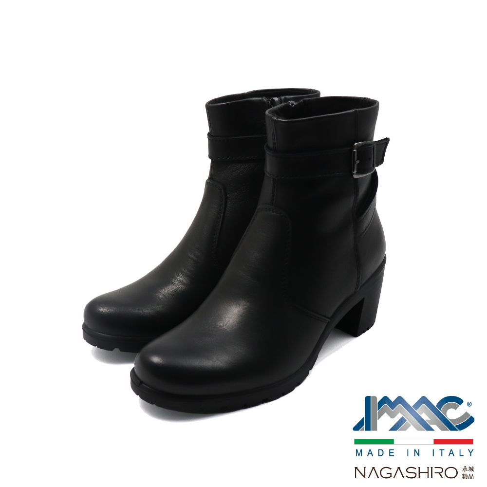 【IMAC】義大利原廠氣墊真皮質感時尚粗跟短靴 黑色(255460-BL)