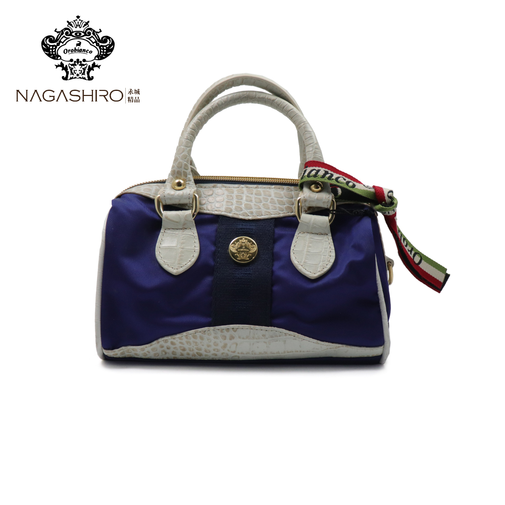 【Orobianco】義大利原廠鱷魚皮造型提把手提包 藍白色(O9146-C)