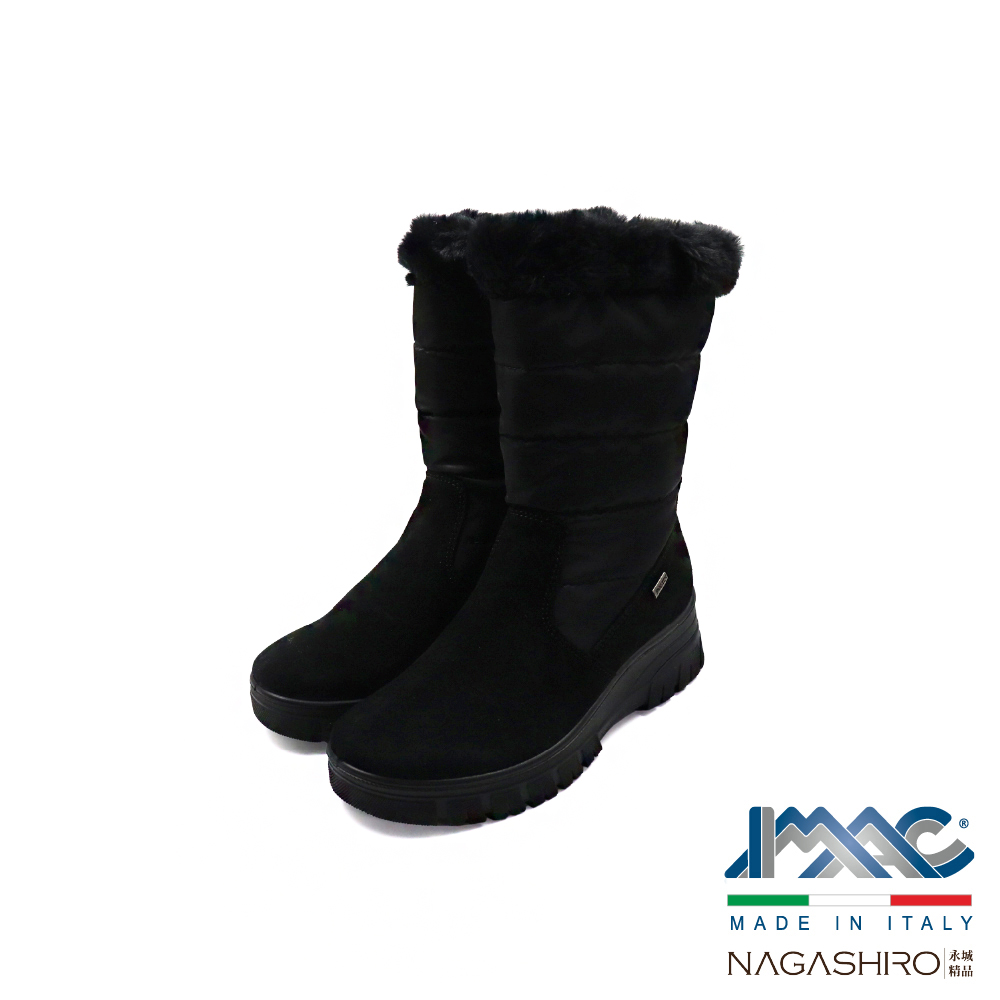 【IMAC】義大利原廠防水內絨毛保暖拼接造型雪靴 黑色(857059-BL)