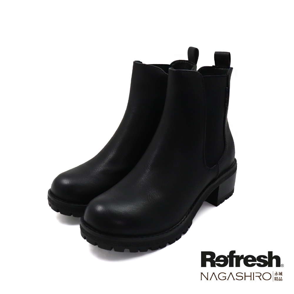 【Refresh】西班牙品牌時尚伸縮造型粗跟女靴 黑色(172919-BL)