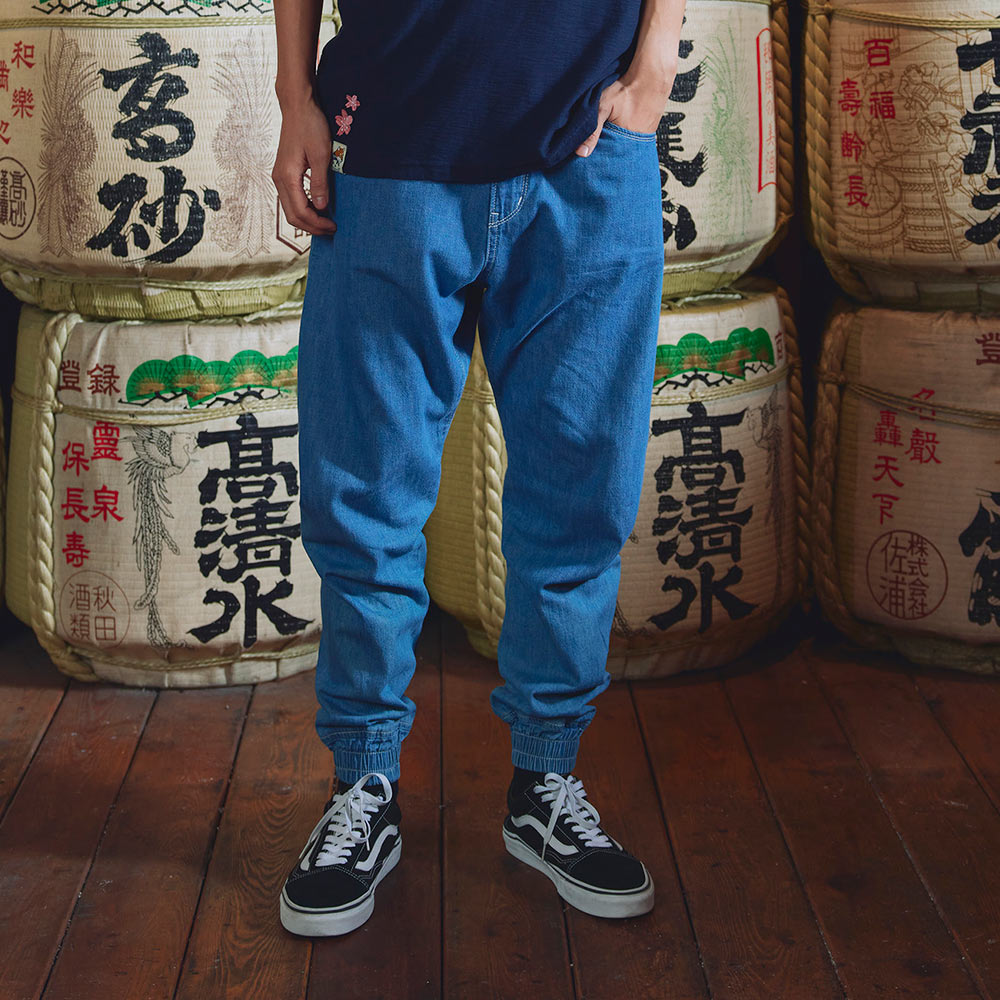 江戶勝|INDIGO|男裝|口袋印花丹寧束口褲