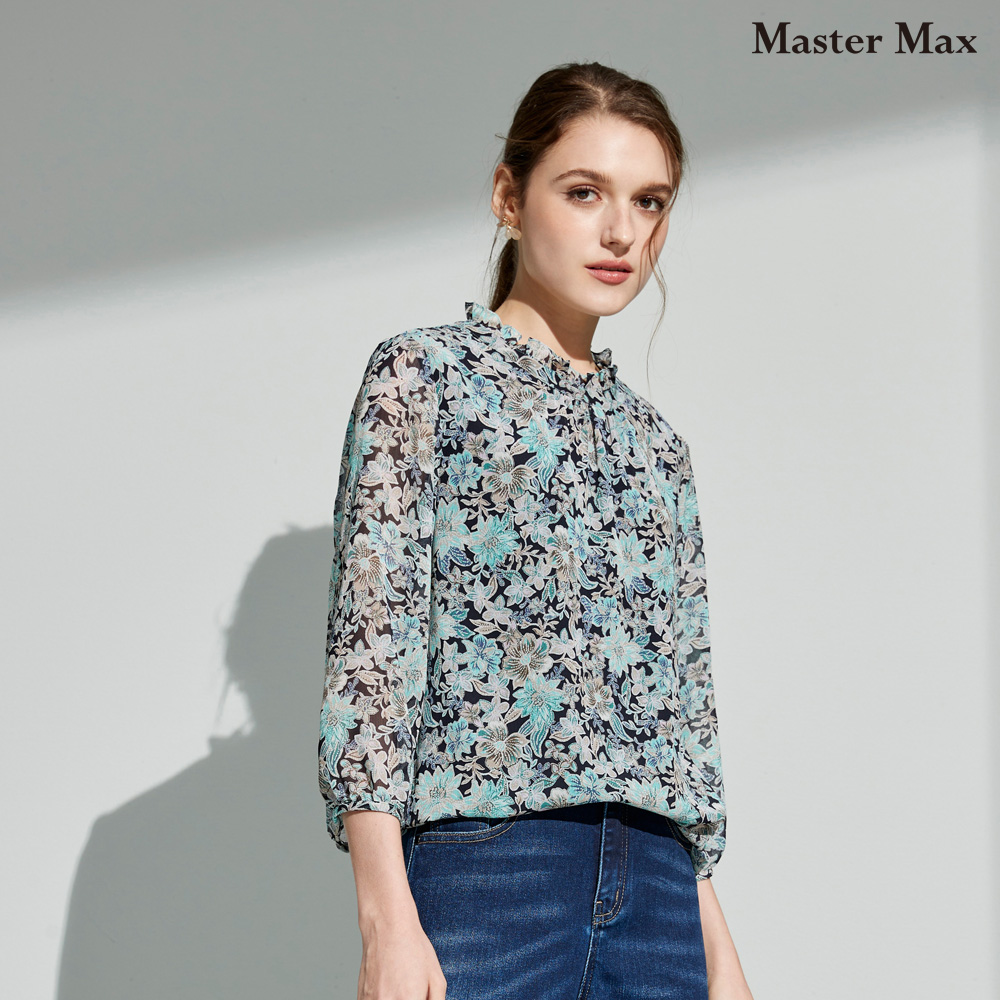 領口花邊滿版七分袖雪紡上衣(8327035)