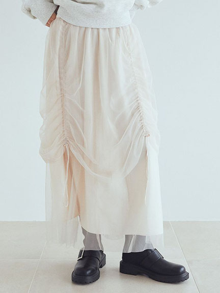 2WAY抽繩設計層次紗裙-附內襯(1K44L0L0300) - earth music&ecology