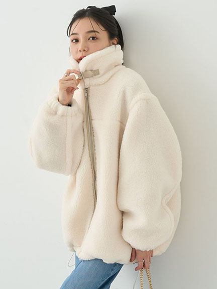 羊羔毛拉鍊抽繩設計高領大衣外套(1K44L0Z0400) - earth music&ecology