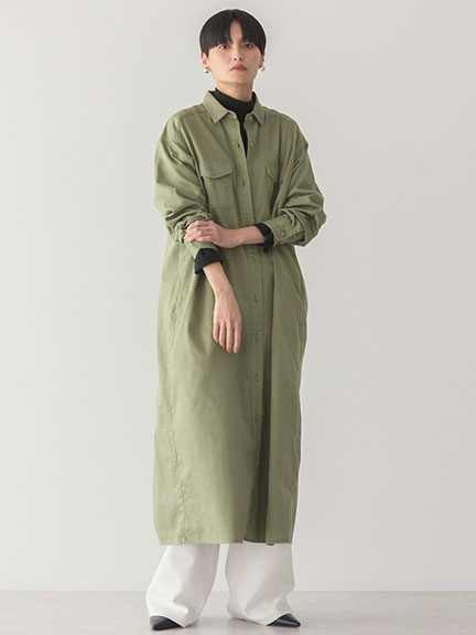 雙口袋襯衫式長版洋裝(HC51L0H0100) - AMERICAN HOLIC