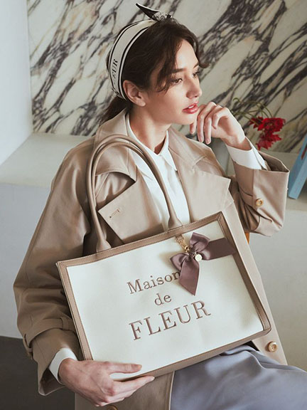 【WEB限定】配色滾邊品牌刺繡方型手提包(08000217700) - Maison de FLEUR