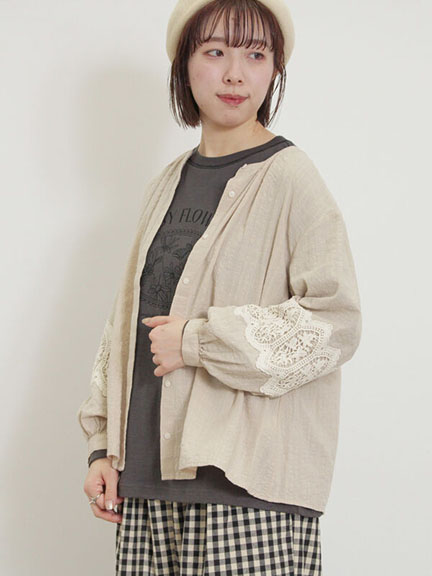 袖蕾絲圖案立領襯衫(0F000555510) - Samansa Mos2