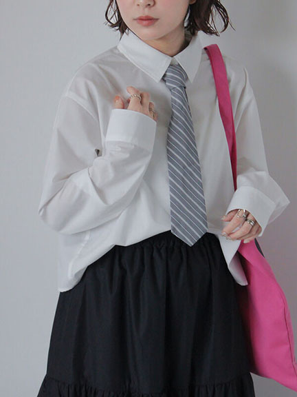 學院風配色可拆領帶短版襯衫(0F000570710) - ehka sopo