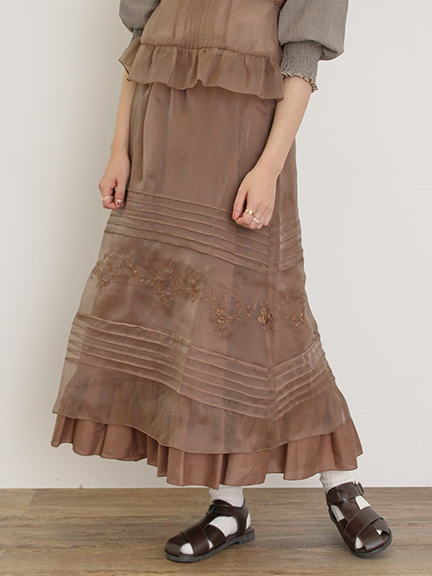 【台灣限定色】柔美薄紗花卉刺繡長裙-附襯裙(0F000728210) - Samansa Mos2
