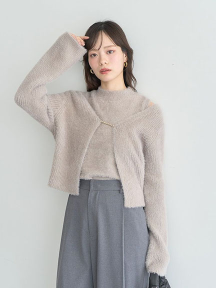 【SET ITEM】毛絨絨低領針織罩衫+小高領背心(01000592400) - earth music&ecology