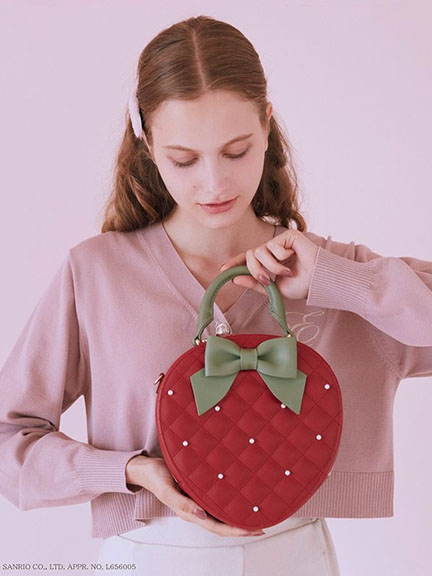 三麗鷗聯名草莓新聞系列-菱格紋內裡圖案印花手提/側背包(08000804100) - Maison de FLEUR