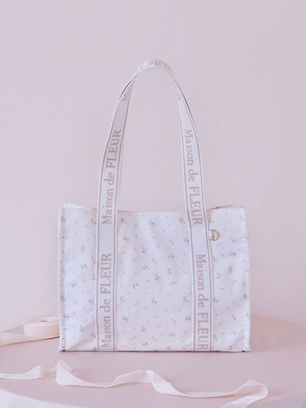 淡粉碎花圖案品牌印花方形手提包(08000966600) - Maison de FLEUR