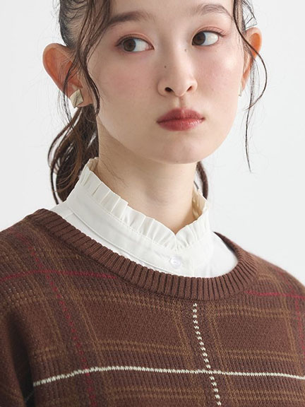 荷葉摺邊排釦襯衫立領(01000827100) - earth music&ecology
