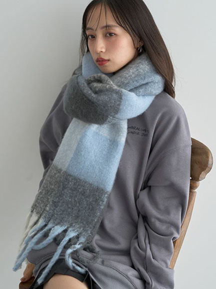 柔彩配色格紋圖案流蘇圍巾(01000880800) - earth music&ecology