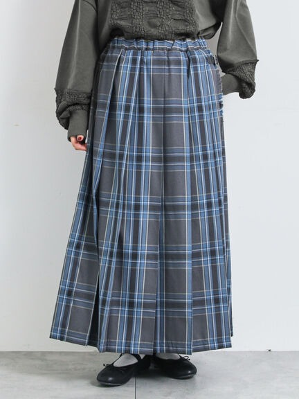 學院風格紋側皮帶造型百褶長裙(0F001311510) - Samansa Mos2
