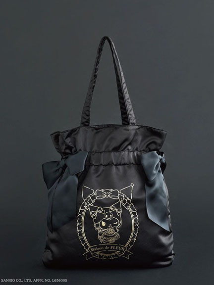 三麗鷗聯名-暗黑酷洛米圖案燙金雙蝴蝶結手提袋(08001004900) - Maison de FLEUR
