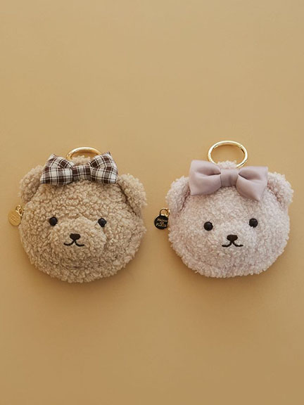 毛絨泰迪熊頭型蝴蝶結迷你收納掛飾(08001059100) - Maison de FLEUR