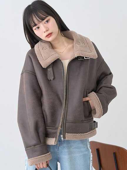 仿羊羔毛拼接保暖大衣外套(01000603800) - earth music&ecology