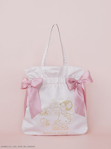 三麗鷗聯名-Hello Kitty圖案燙金雙絲帶束口手提袋(08001073300) - Maison de FLEUR