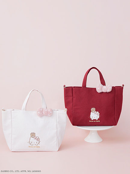 三麗鷗聯名-Hello Kitty圖案刺繡蝴蝶結配飾手提/側背包(08001073400) - Maison de FLEUR