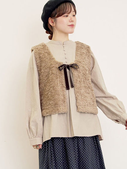 2WAY前後兩穿暖毛絨蝴蝶結綁帶背心(0F001289810) - Samansa Mos2