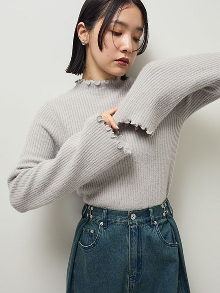 直條羅紋荷葉喇叭袖針織上衣(06001078100) - Green Parks