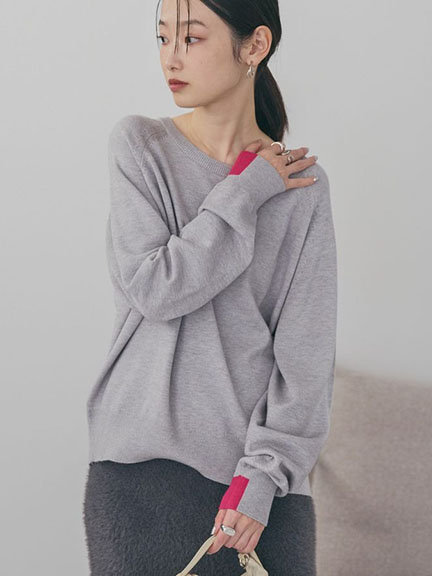 防靜電-雙色拼接袖落肩針織上衣(0H000939900) - AMERICAN HOLIC